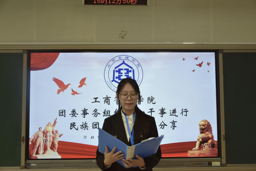为深入弘扬民族团结精神,激励工商学子将民族团结理念转化为实际行动,主动投身于各民族交融互鉴的实践中,为民族团结进步事业注入工商力量,以青春之姿共绘民族团结的奋进图景,10月23日,工商管理学院举办“工商赤心昭团魂,民族团结聚同心”主题宣讲会。学院团委书记王晓东出席此次活动,活动由主持队成员丁紫怡主持,部分2024级、2025级学生代表参加。