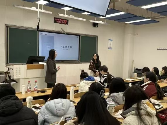 为打破理实壁垒、深化产教融合,将企业前沿实战经验精准转化为育人资源,2025年11月25日,人力资源管理系特邀请学院签约实践教学基地单位——快乐沃克人力资源股份有限公司的李晓宇经理和猎头部门负责人李尚凯走进校园,以《人员招聘与素质测评》为主题,为学生们带来一场干货满满的专题讲座。活动由系副主任王丽媛副教授主持,本系两个班级的学生齐聚现场,认真学习。