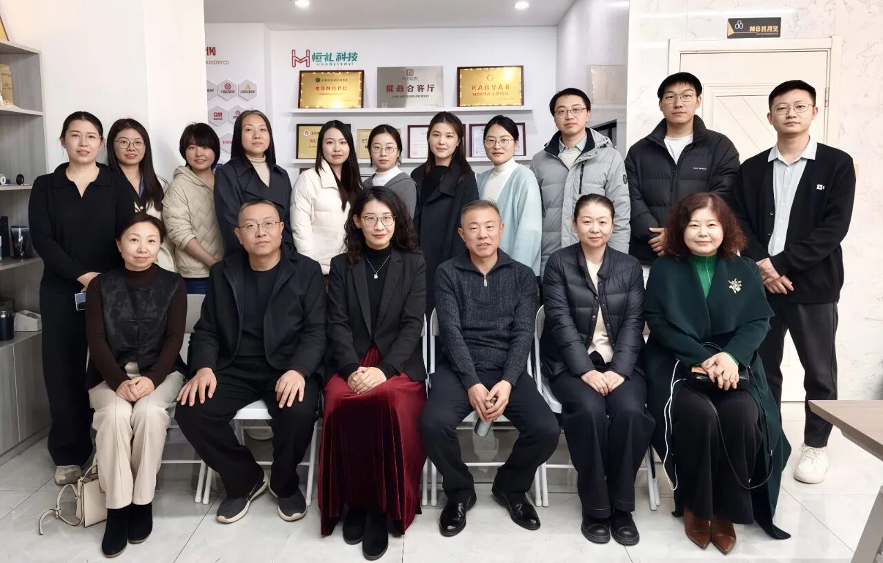 2025年12月1日下午,工商管理学院副院长封雪韵与MBA中心执行主任桑银峰老师带领学院13名教师走访恒礼科技有限公司。本次走访,是工商管理学院“走出校门开展教研活动”的有益尝试,旨在让授课教师特别是年轻博士与企业紧密接触,倾礼科技团队热情接待,并与到访的老师进行了全面而深入的沟通交流。