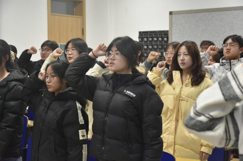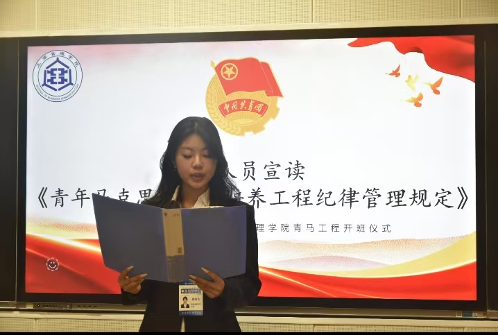 随后,工作人员宣读《青年马克思主义培养工程纪律管理规定》,对学员参与活动的基本行为准则作出明确说明,为活动有序开展奠定基础。宣读完毕后,团员代表薛世浩带领全体学员重温入团誓词,铿锵有力的誓言响彻现场,进一步坚定了青马学员的理想信念,凝聚起践行初心,勇担使命的奋进力量。