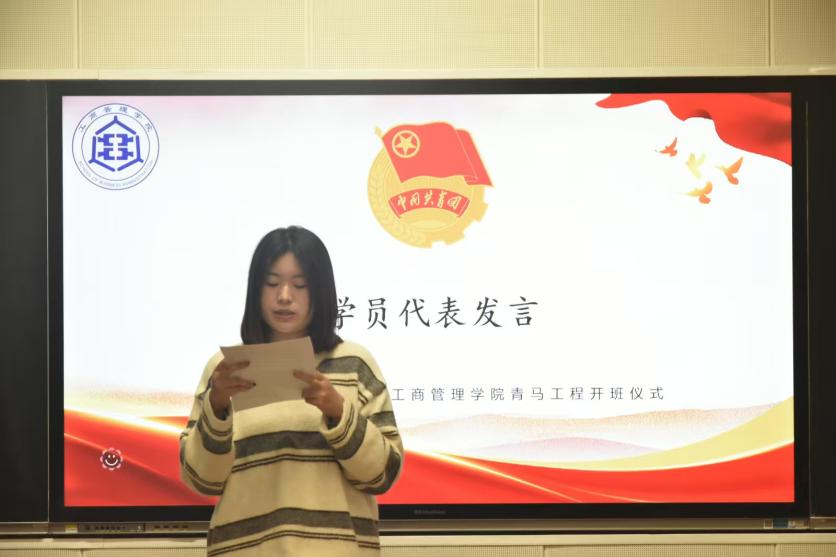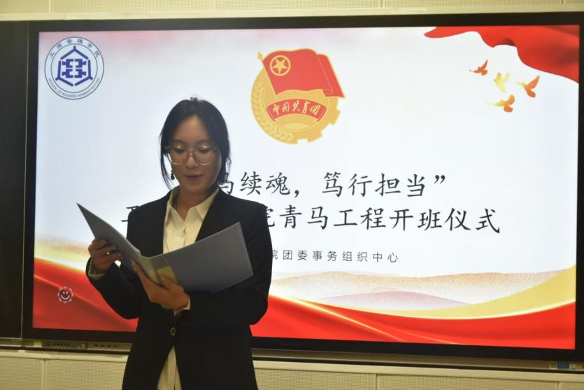 活动伊始,全场起立齐唱团歌。团歌歌唱完毕后,王晓东作动员讲话,围绕活动举办初衷、核心主题及预期目标进行阐述,明确本次活动对青马班学员成长成才的重要意义,要求全体学员以严谨态度参加活动并认真学习。紧接着,学员代表陈雨鑫上台发言,表示将以积极严谨的态度投入青马学习课堂学习之中,认真钻研理论知识,在交流之中取长补短,昂扬向上。