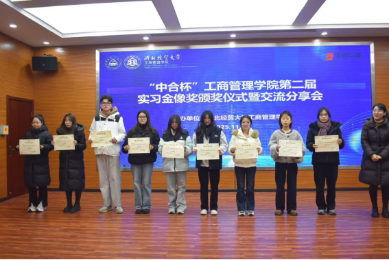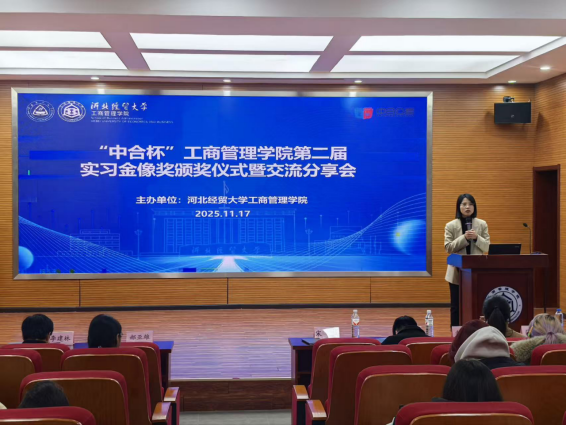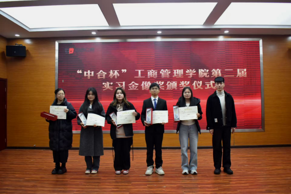 为进一步搭建理论与实践深度融合的优质平台,表彰在实习实践中涌现的卓越学子,助力同学们从校园到职场的转型之路上行稳致远,11月17日,工商管理学院举办了第二届“中和杯”实习金像奖颁奖仪式暨交流分享会。活动由院主持队成员杨佳烨主持,工商管理学院党委副书记宋欣、团委书记兼学生工作办公室主任王晓东、学科科研办公室主任李建林、就业联络员赵靓丹、中合公考负责人郝亚雄先生出席,获奖同学和师生代表参加。