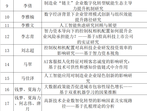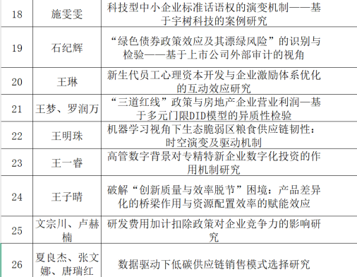 河北经贸大学第五届“研在工商”研究生学术论坛(2025)自2025年10月12日起公开征集学术论文,至2025年11月21日止,共征集到论文53篇。经专家审阅和专业评审团队讨论,有30篇论文入选本届论坛。现公布入选论文: