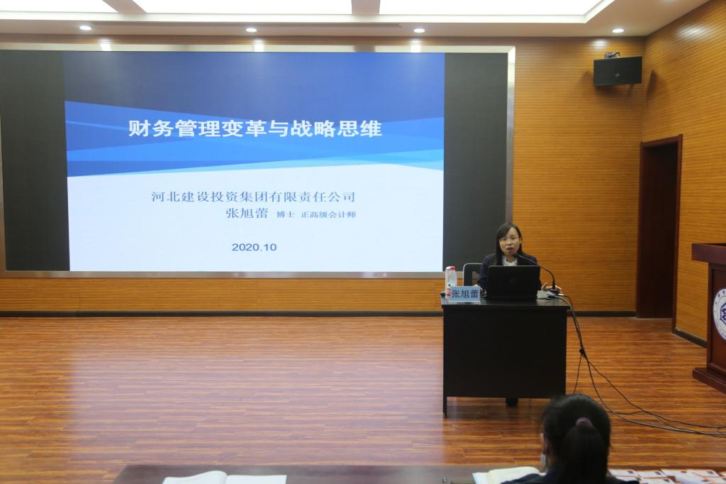 2020年10月24日下午,应河北经贸大学MBA中心邀请,河北建投集团财务管理部副总经理、正高级会计师、全国会计张旭蕾博士在工商大讲堂做题为《财务管理变革与战略思维》的专题报告。报告会由工商管理学院院长李桂荣主持,2019级MBA学员及2020级学硕研究生100余人参加。