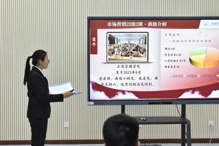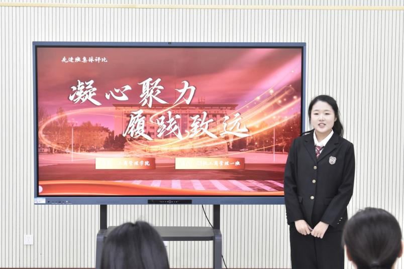 活动伊始,主持人杨佳烨对莅临现场的各位领导、评委老师及学生代表致以热烈欢迎,并简要介绍了本次先进班集体评选活动的目的、意义、评选标准与流程。在展示环节,2023级市场营销2班等竞选班级发言人依次上台,围绕思想建设、学业发展、志愿服务与班级氛围等多个维度,全面呈现了各班在集体建设中所取得的丰硕成果。他们结合生动鲜活的案例与详实数据,不仅展现了扎实的学风与积极的思想面貌,更分享了班级在志愿服务与社会实践中的感人故事,以及温馨融洽、互助共进的班级氛围,充分彰显了新时代大学生团结奋进的班级氛围以及担当有为的社会责任感。