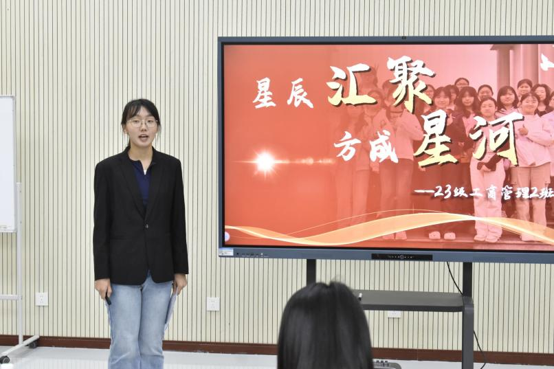 为加强班级文化建设,树立先进典型,进一步凝聚班集体力量,营造积极向上、互助共进的优良氛围,近日,工商管理学院于MBA1教室举办校级先进班集体评选活动。学院党委副书记宋欣、专职组织员刘翠莲、团委书记(学工办主任)王晓东及部分专兼职辅导员出席了本次活动。2023级、2024级、2025级各班的班长与团支书共同参与,活动由院主持队成员杨佳烨主持。