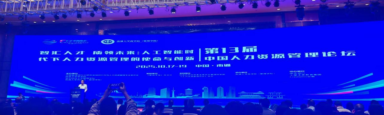 2025年10月17日至19日,第十三届中国人力资源管理论坛在江苏南通大学隆重举行。本届论坛由中国管理现代化研究会组织行为与人力资源管理专业委员会、南京大学、华中科技大学和南通大学联合主办,南通大学商学院(管理学院)承办。论坛以“智汇人才,质领未来:人工智能时代下人力资源管理的使命与创新”为主题,吸引了来自全国230余所高校、科研机构及企业的近600名专家学者、企业代表及博硕士研究生齐聚一堂,共同探讨人工智能时代人力资源管理的创新与发展。