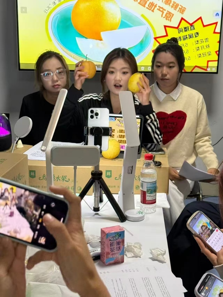 为扎实推进公益助农行动,切实解决学校周边农户农产品销售难题,精准帮扶柳荫街退伍老兵等群体拓宽梨果销路,有效缓解其农产品积压、增收困难的现实压力,11月3日,工商管理学院志愿服务中心“微光服务站”在抖音平台成功举办“青春助农·梨享甜蜜”主题助农直播活动。本次活动聚焦柳荫街退伍老兵种植的优质梨果,在抖音带货总榜跻身第52名、生鲜榜位列第6名,以实际行动为老兵纾困解难,彰显青年学子的责任担当。直播期间,团委书记(学工办主任)王晓东亲临现场指导,与志愿者们共同为助农直播助力。