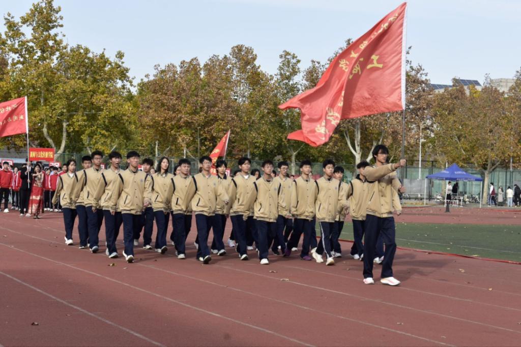 开幕式上,工商管理学院方阵迈着整齐划一的步伐惊艳亮相。鲜艳的院旗在队伍前方高高飘扬,方阵中的同学们身着统一院服,胸前的院徽与飘扬的院旗交相辉映,彰显着工商学子的昂扬风貌。方阵行进过程中,同学们精神抖擞、口号嘹亮,既展现了团队的凝聚力,也传递出敢于拼搏、永不言弃的信念。