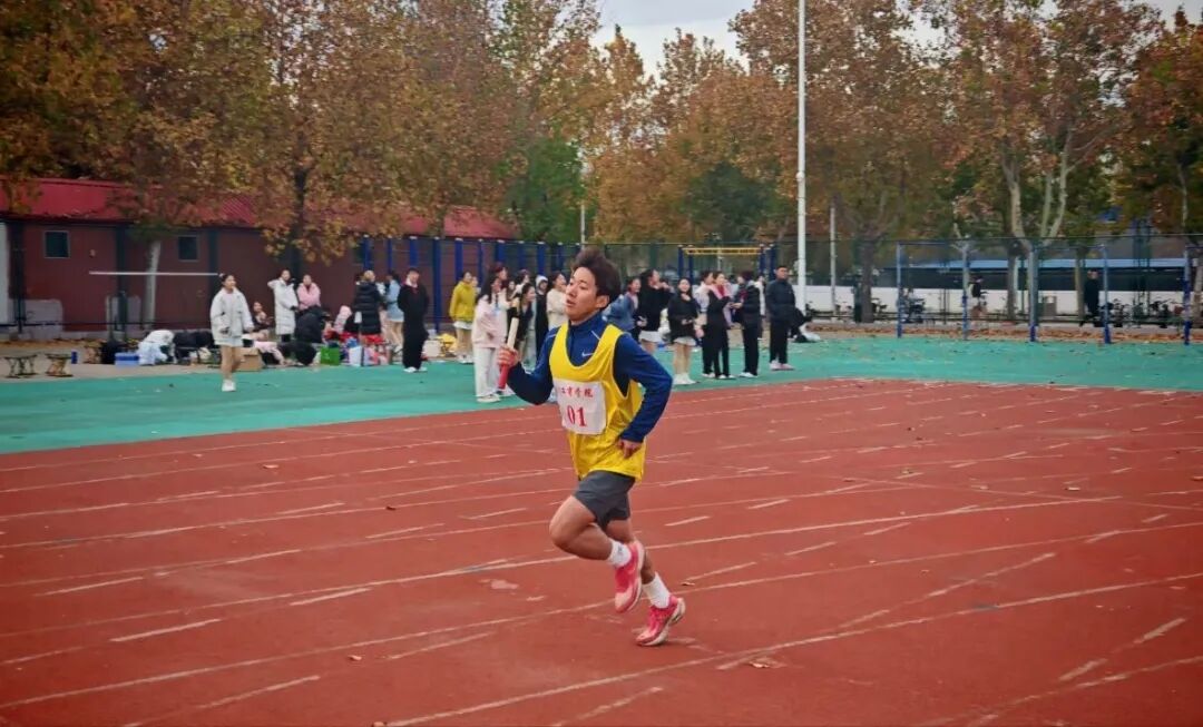 在万米接力赛环节,工商管理学院的运动员们火力全开,在赛道上奋力向前。他们眼神坚定,奔跑的身影如奔涌的浪潮般充满力量。观众席上加油喝彩声不绝于耳,接力棒在队员间稳稳传递,默契的衔接、彼此的鼓劲,将工商学子敢闯敢拼、凝心聚力的精神展现得淋漓尽致。