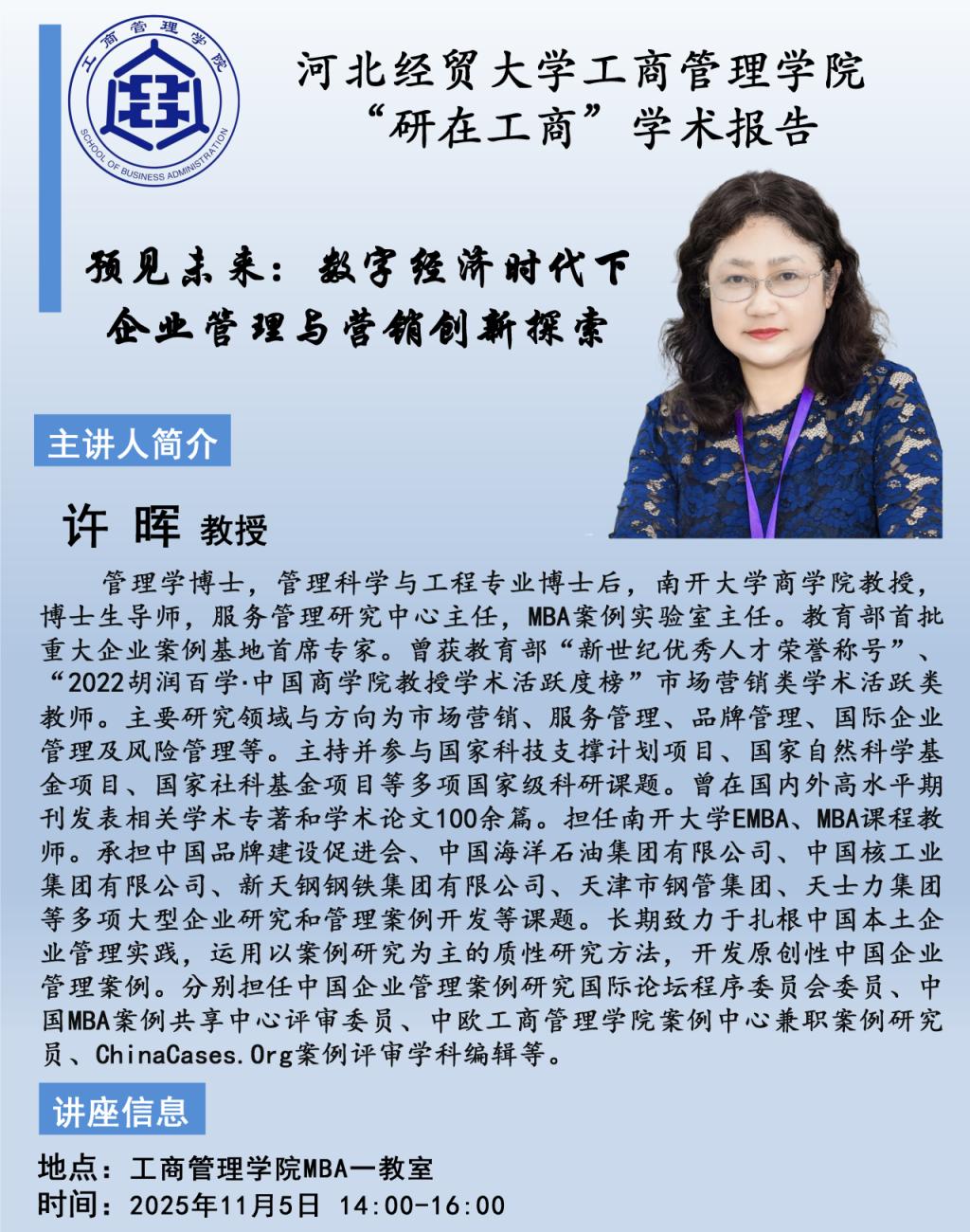 学术讲座预告||南开大学许晖教授将来我院讲学