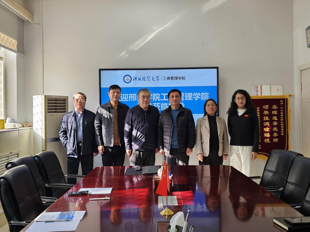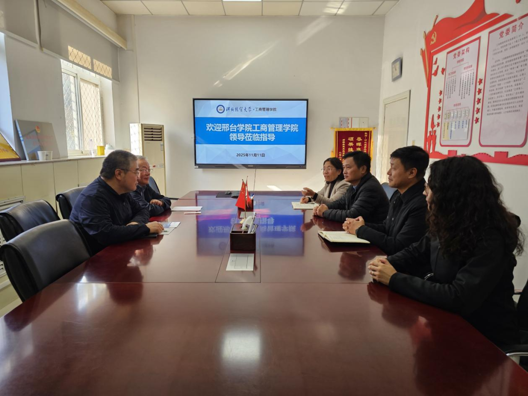 11月11日,邢台学院工商管理学院院长郝庆禄一行到访我院,就工商管理类专业与学科建设进行交流,工商管理学院党委书记张霖、院长李桂荣、副院长石晓飞、封雪韵,河北省商业经济学会会长孟华兴教授参加交流活动。