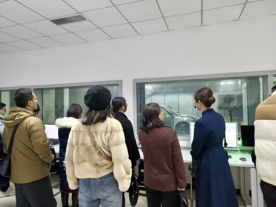 调研首站抵达长城汽车技术中心,团队根据“整车四驱半消音室—环境风洞试验室—长城汽车展厅”的路线展开参观。在整车四驱半消音室,技术人员讲解了NVH测试背后的技术逻辑及其在营造舒适体验中的关键作用,使学生深刻理解产品性能、用户感知和品牌价值的营销链路;在环境风洞试验室,极端环境模拟测试展示了企业对产品可靠性的严格把控,为学生提供了从“技术可信度”到“品牌信任构建”的真实案例。