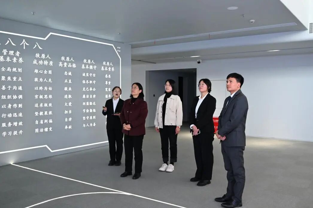 活动第一站来到牧原集团郑州总部,学院一行参观了牧原集团展厅,在讲解员的带领下全面了解了企业的发展历程、产业布局、企业文化及数智化运营模式,直观感受到企业在产业链构建、人才培养等方面的先进理念与实践成果。