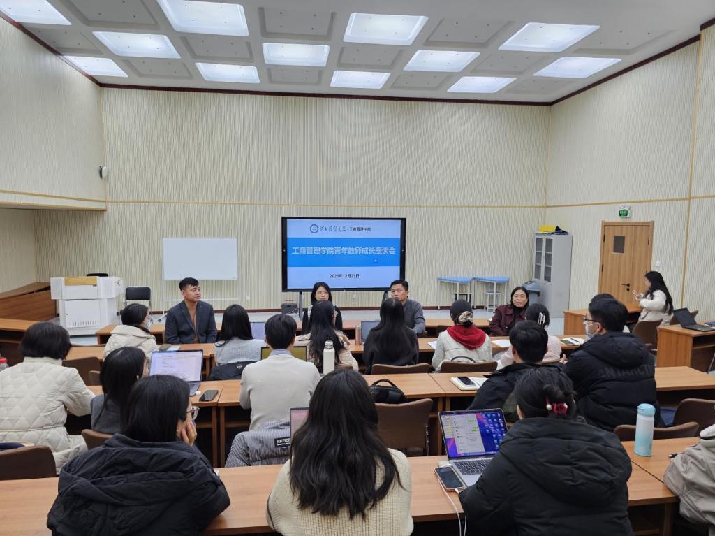 12月23日,工商管理学院于MBA一教室召开青年教师成长座谈会。会议由工商管理学院副院长石晓飞主持,学院党委书记张霖、院长李桂荣、副书记宋欣出席,学院20多名青年博士教师参加。学院领导与青年教师围绕教学、科研、社会实践、职业发展、学院服务支持等议题展开坦诚交流,旨在倾听青年教师心声、破解成长难题,为学院高质量发展凝聚青春动能。