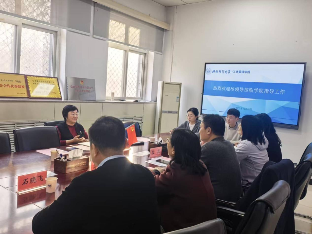 2025年12月31日,学校党委书记李晓华莅临工商管理学院调研指导工作,与学院领导班子成员及青年教师代表座谈交流,深入了解学院发展情况,为学院高质量发展把脉定向、精准指导。