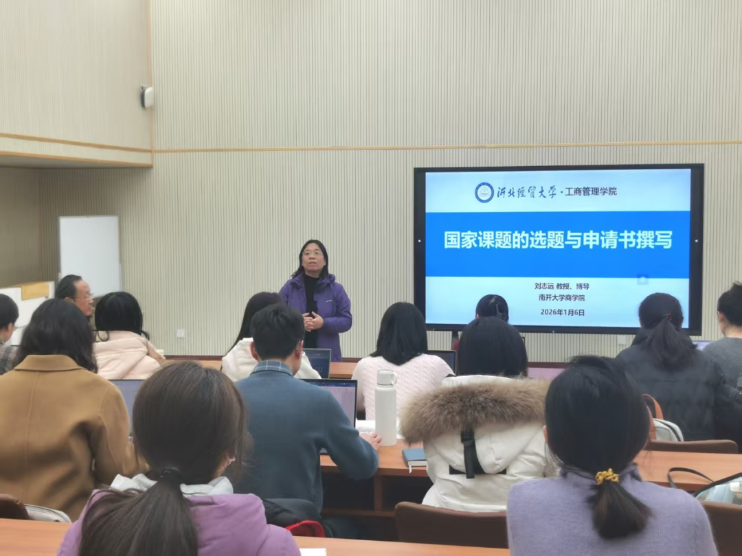 1月6日,工商管理学院邀请南开大学刘志远教授于MBA一教室作题为“国家课题的选题与申请书撰写”的专题报告。报告由工商管理学院院长李桂荣教授主持,学院青年博士教师参加会议。